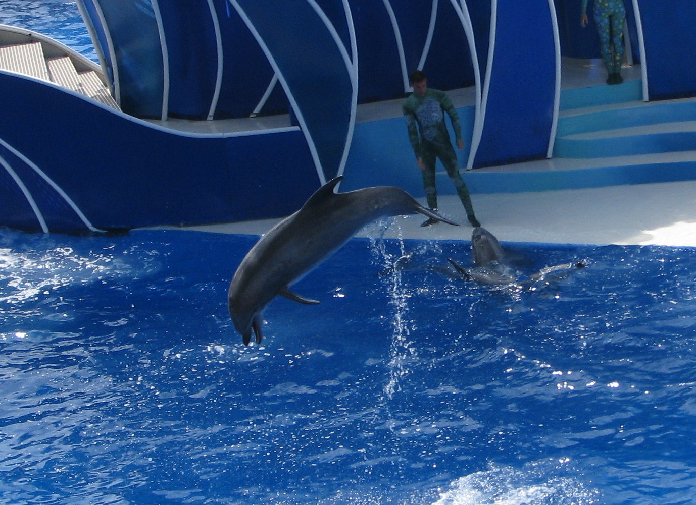 My favorite show was probably "One World", which is the Shamu show. It's amazing that a killer whale can throw it's entire weight out of the water and into the air like that. Also, not only are the rides designed to get you wet, but so are the shows. There's a section of the bleachers called the 'splash zone' where if you decide to sit there, you WILL get wet. We never actually got to do that, you have to get there early, but check out that picture of Shamu using his tail to soak the audience... maybe it's a good thing we missed that experience.